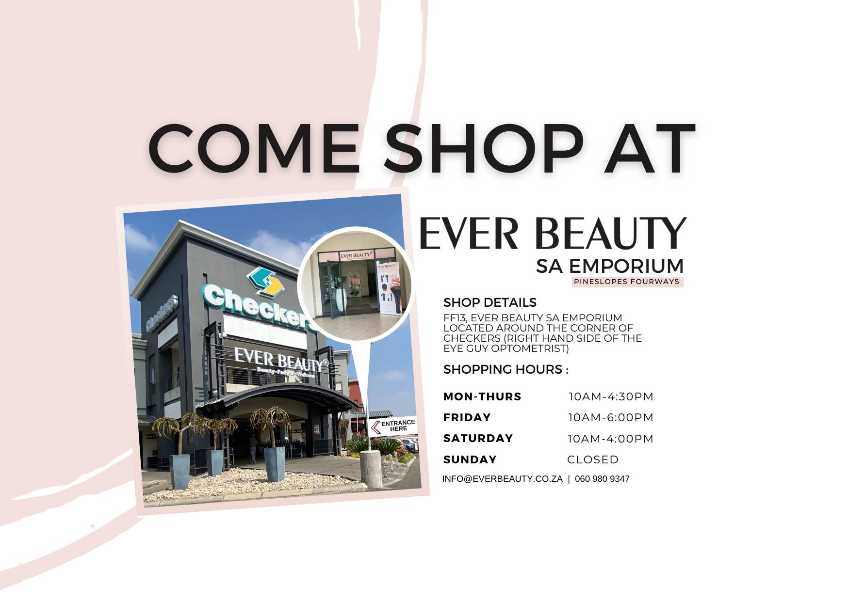 The Ever Beauty SA Emporium offers Beauty, Fashion, Wellness products & services. This beautiful space has been designed by the Ever Beauty SA sisters with an objective to collaborate with local businesses, so that we can Grow and Glow together.